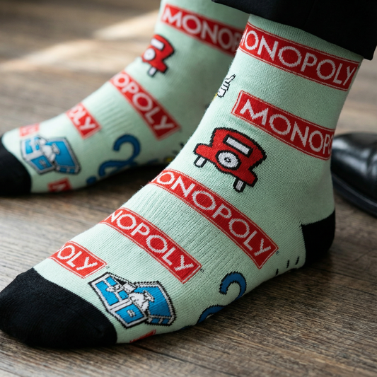 Monopoly Logos Men’s Crew Socks | Crazy Socks Fun Game-Inspired Style