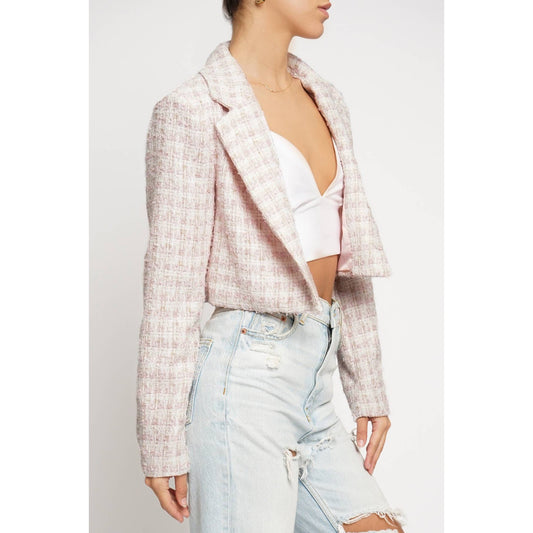 Cropped Boucle Jacket in Pink [Size Options: SM-L]