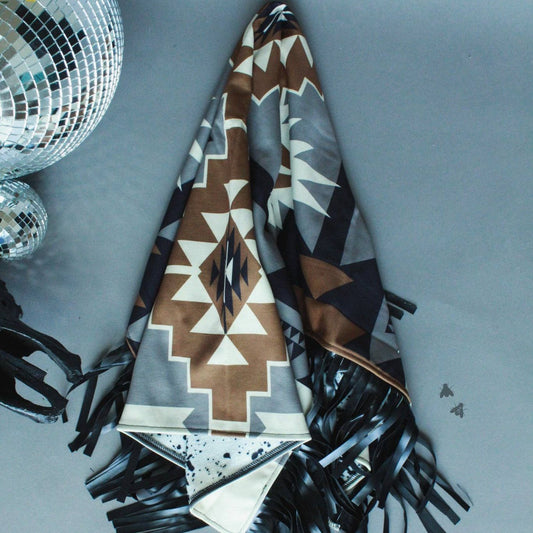 Boujee Babe Reversible Small Blanket | Aztec + Leopard Print Designs with Fringe | 43" x 29"