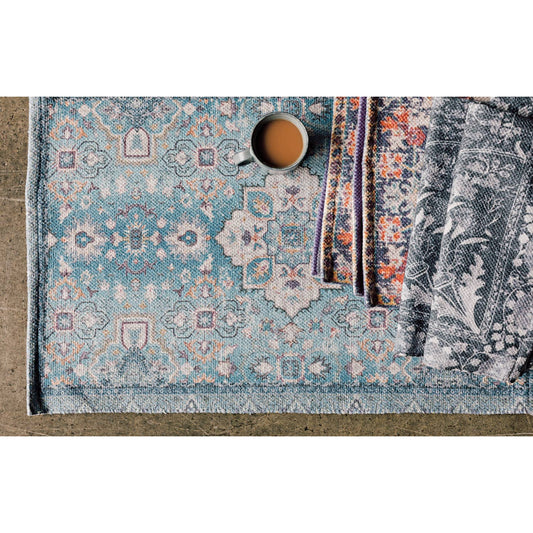 Midnight Blue Heritage Rug | Upcycled-cotton Printed Carpet Mat | 2 x 3 Feet