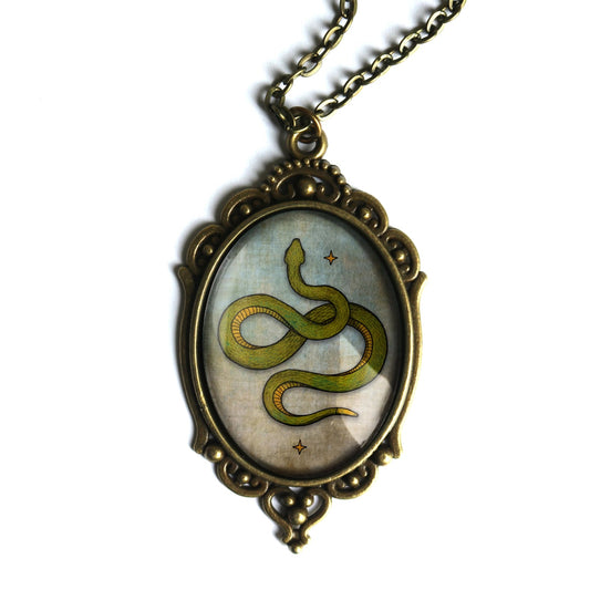 Coiled Snake Ornate Oval Pendant | Handmade in the US