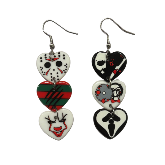 Horror Heart Earrings | Spooky Cute Acrylic Jewelry Gift for Halloween & Horror Lovers