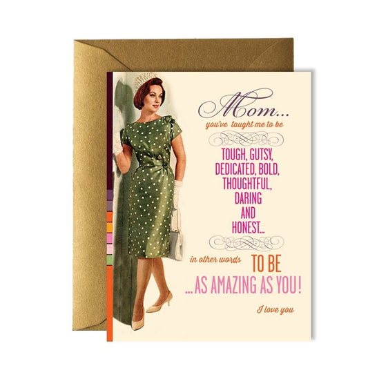 Mom: You've Taught Me to Be Tough, Gusty, Daring – and I Love You Retro Style Greeting Card