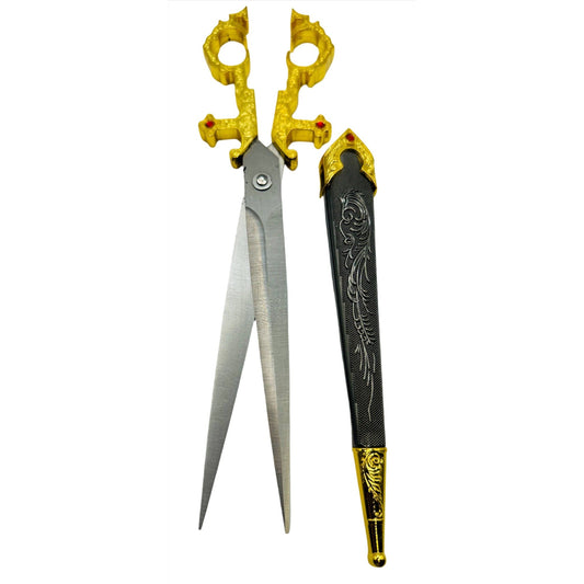 Gold Renaissance Scissors with Scissors Holder | Sword in Scabbard Fantasy Novelty Large Scissors