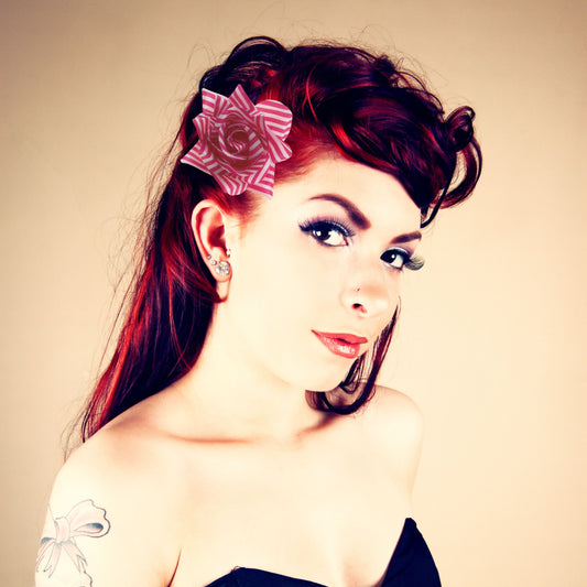 Pink & White Striped Rose Hair Clip | Retro Floral Hair Accessory