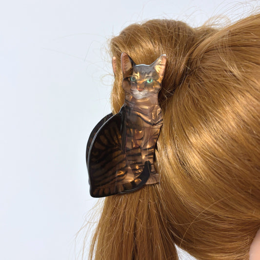 Velvet Claws Ultra Realistic Brown Tabby Cat Hair Claw | Claw Clip in Velvet Travel Bag