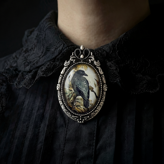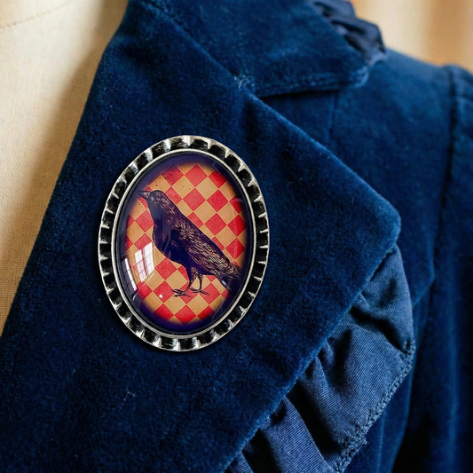 Crow Collage Art Brooch Antiqued Silver | Vintage Pin