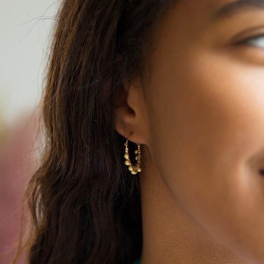 Gold Beaded Ball Hoop Earrings | Designed in the UK | 18K Gold Plated Brass