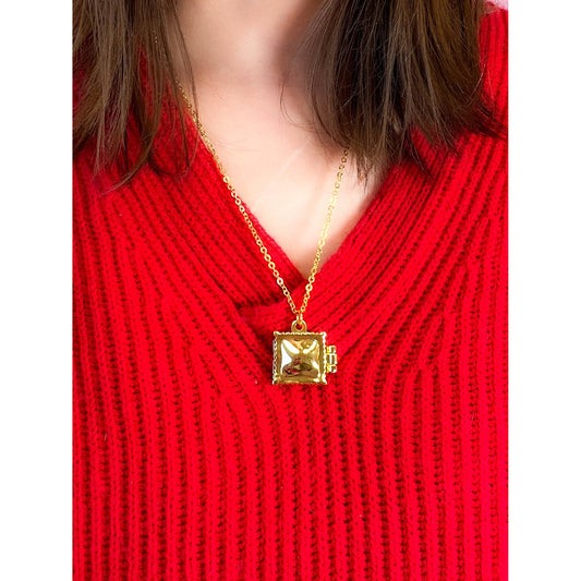 Ravioli Locket Necklace | Gold Plated Pendant Chain Jewelry