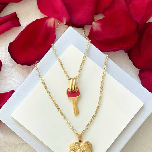 Romantic Red and Gold Key Necklace | Handmade in Athens, Greece