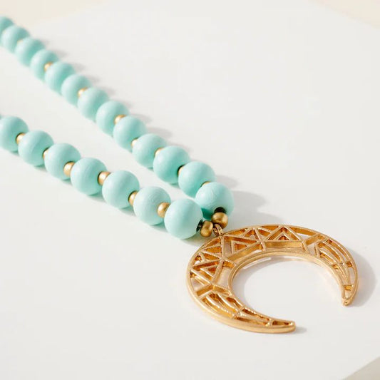 Wood Bead Crescent Pendant Necklace | Ivory or Mint