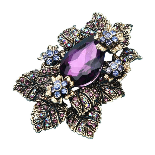 Purple Crystal Palace Style Flower Brooch | Large Floral Motif Jeweled Pin