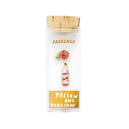 Rose and Rosé Mismatched Stud Earrings | Cloisonné with 22 Karat Gold | In a Glass Gift Vial