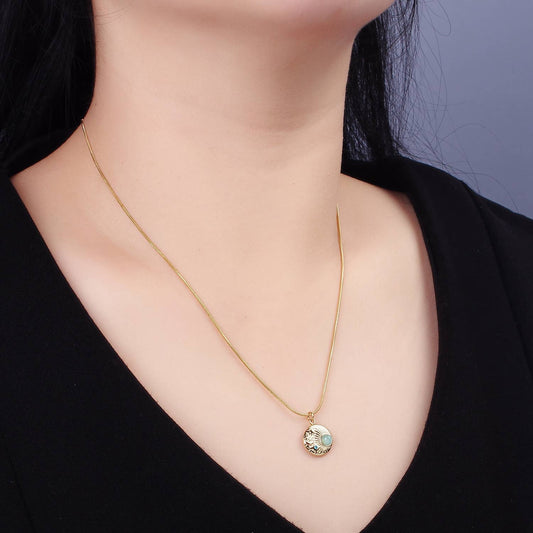 Blue Amazonite 16" Cocoon Necklace | Cubic Zirconia Gemstone Round Pendant