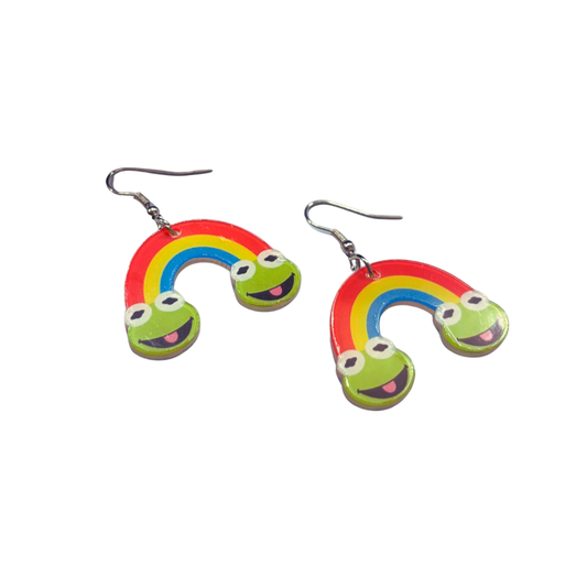 Cottagecore Frog with Rainbow Earrings | Cute Nature-Inspired Acrylic Jewelry Gift for Her
