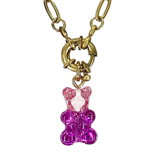 Gradient Gummy Bear Necklace on Gold Chain | Pink-Purple or Pink-Gold Candy Pendant