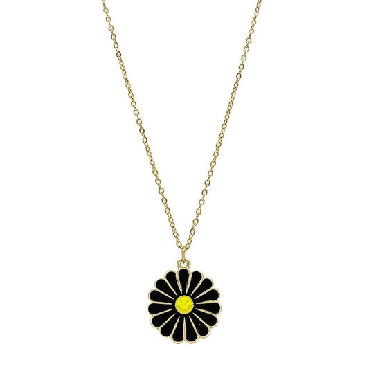 Groovy Flower Happy Face Pendant Necklace in Black and Yellow | Retro Smiley Charm Necklace