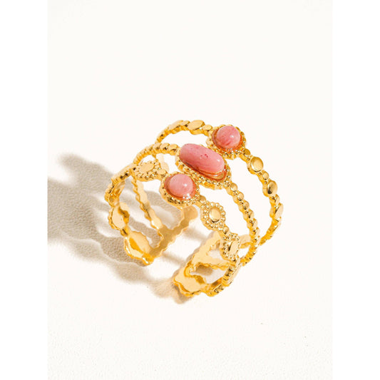 Posh 18K Gold Non-Tarnish Trilayer Adjustable Stone Ring in Pink