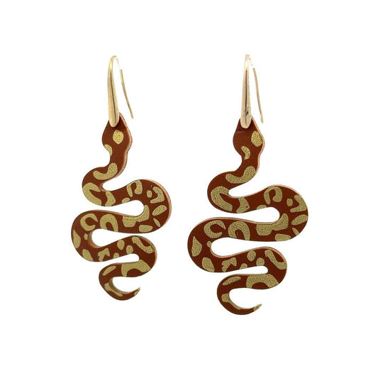 Snake Hook Dangle Statement Earrings | Brown and Jet Black Serpent Earrings