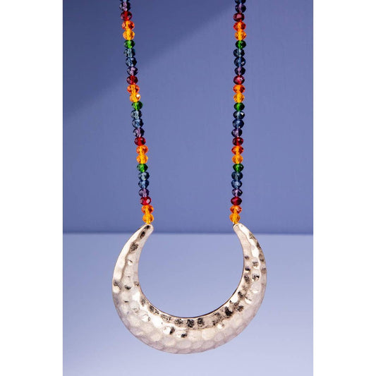 Luna Beaded Rainbow Necklace | Silver Witchy Crescent Moon Long Statement Necklace