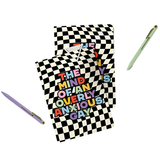 Anxious Gay Thoughts Checkered Pocket Journal | Mini Notebook | 40 Pages