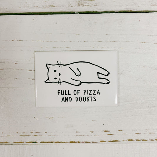 Full of Pizza and Doubts Funny Cat Rectangular Magnet | Ref Fridge Magnetic Surface Decor | 3" x 2"