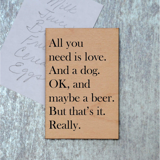 All You Need Is Love And A Dog Funny Wood Refrigerator Magnet | 2" x 3"