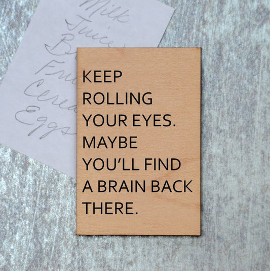 Keep Rolling Your Eyes. Maybe You'll Find A Brain Back There Funny Wood Refrigerator Magnet | 2" x 3"