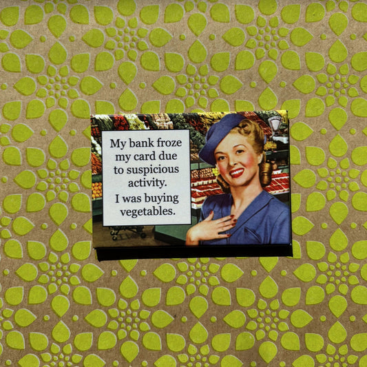 The collection is packed with sayings about aging disgracefully, eating too much cheese, correcting people’s grammar, and surviving the chaos of politics — basically the entire human experience in magnet form. You’ll spot work from Ephemera, Magik Missile, A Shop of Things, Heartfelt, The Found, Primitives by Kathy, Driftless Studios, GetBullish, and a rotating crew of small designers who excel at snarky one-liners. It’s like curating your own magnetic mood board, but with more profanity and cats.