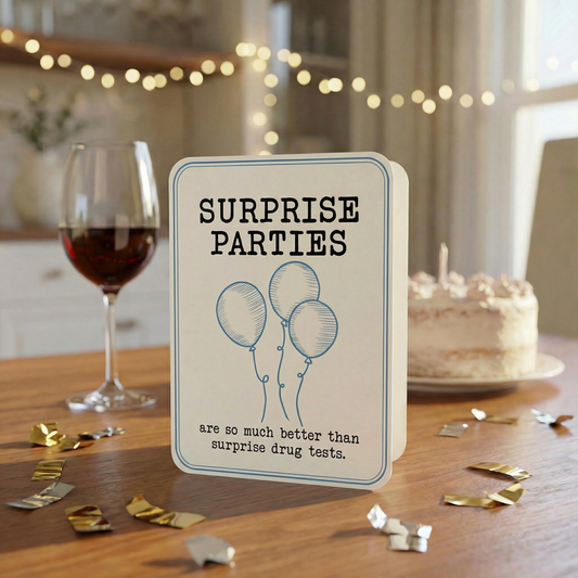 Surprise Drug Tests Deluxe Greeting Card with Sticker | Blank Inside