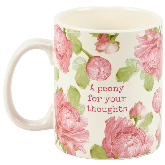 A Peony For Your Thoughts Pink Peonies Mug | Flower Stoneware Coffee Tea Cup | 20 oz