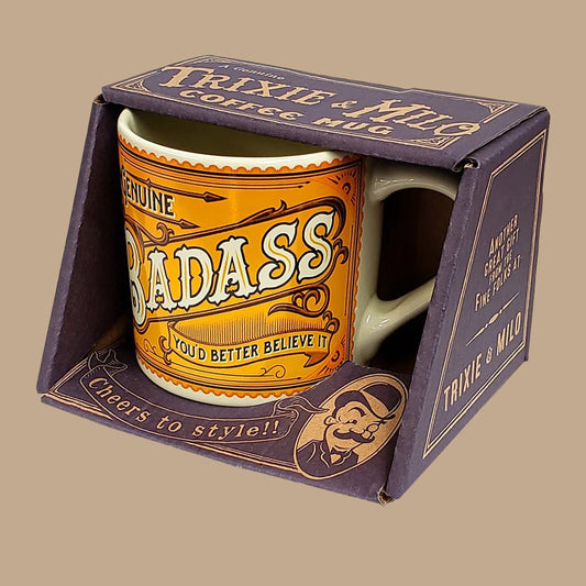 Genuine Badass You'd Better Believe It Ceramic Mug | Vintage Style | Design on Both Sides | In a Gift Box