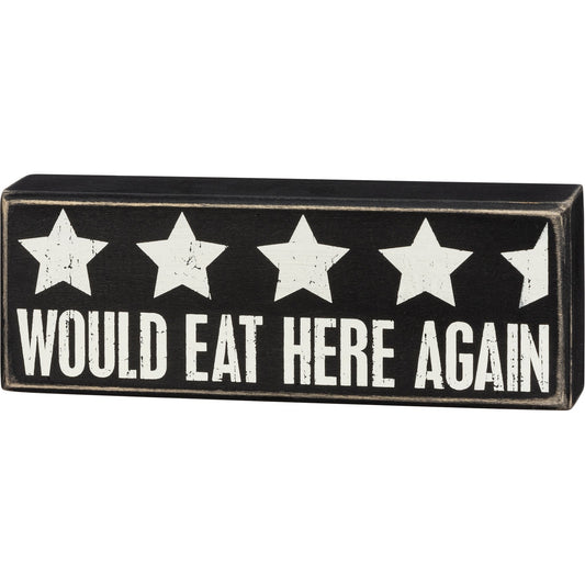 Would Eat Here Again 4.5 Stars Wooden Box Sign | 9" x 3.25"
