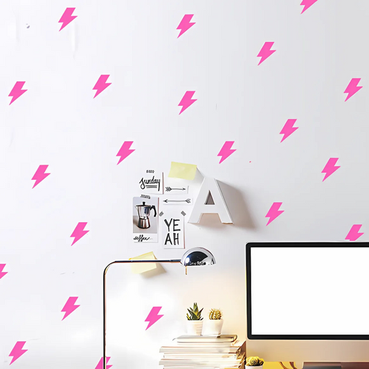 Lightning Wall Stickers for Home Decor | Pack of 48 Lightning Bolt Vinyl Wall Decals in Black or Pink