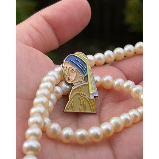 Girl with a Pearl Earring Enamel Pin | Vermeer Inspired Soft Lapel Art Pin | 0.7" x 1.1"