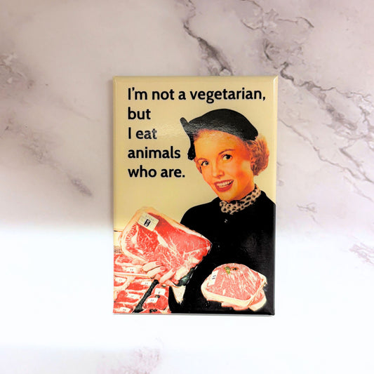 I’m Not a Vegetarian, I Eat Animals Who Are Funny Retro Magnet | Refrigerator Magnet