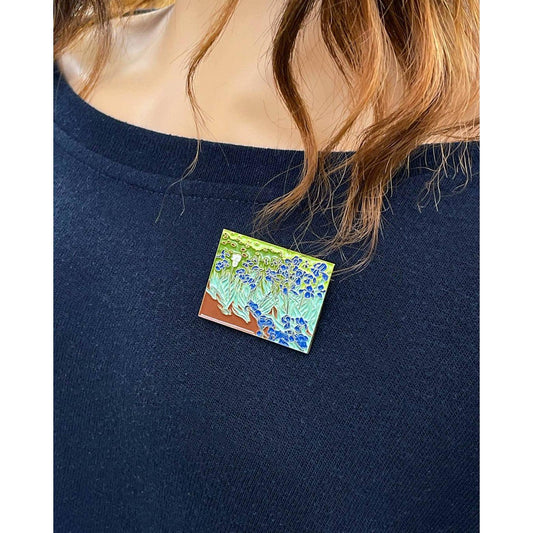 Irises Enamel Pin | Van Gogh Inspired Art Soft Lapel Pin | 1.6" x 1.2"