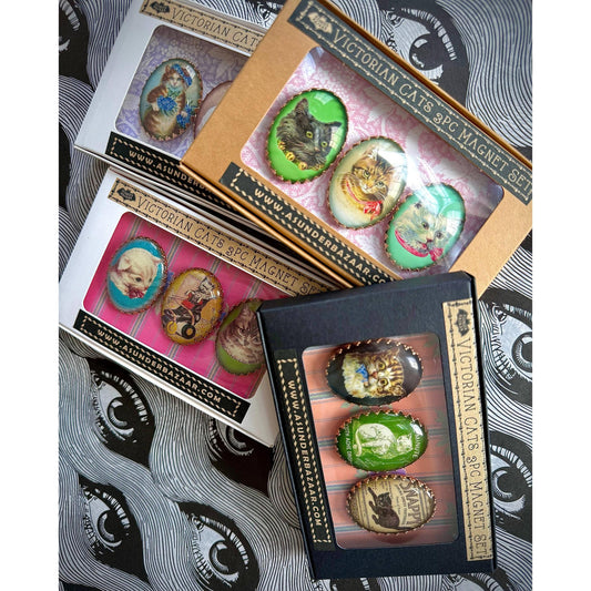 Victorian Cats 3-Piece Handmade Glass Magnets | 4 Styles