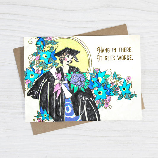 Hang in There, It Gets Worse Funny Graduation Card | Blank Greeting Card