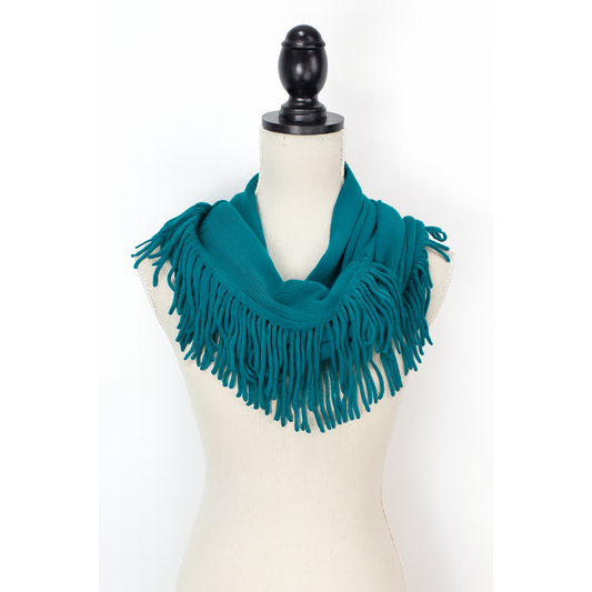 Knit Fringe Necklace Scarf | Lightweight Acrylic Loop Infinity Scarf | Turquoise Black Ivory