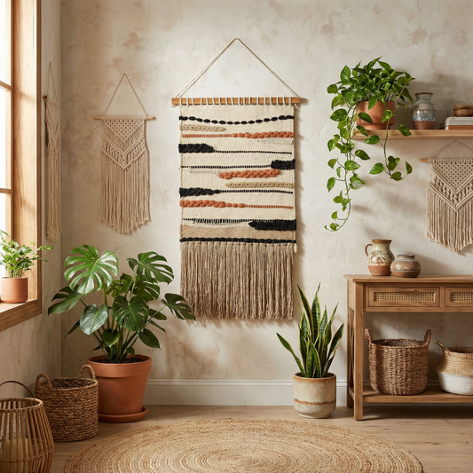 Ophelia Boho Woven Wall Hanging | Cotton Fringe Tapestry with Wooden Rod