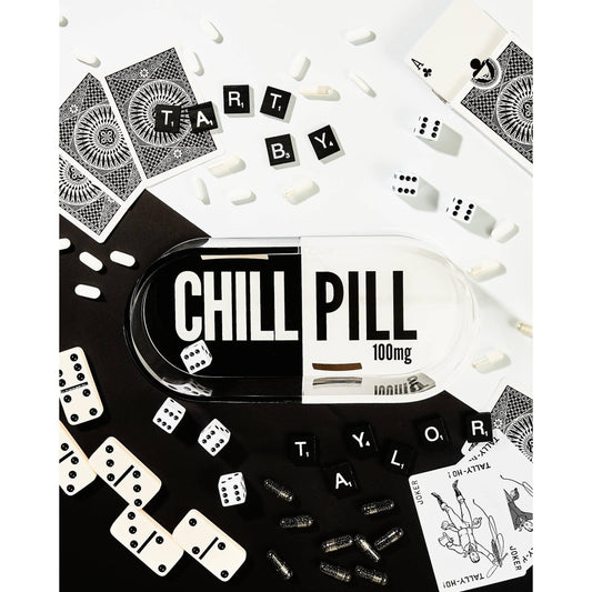 Chill Pill Trinket Tray in Black & White | Decorative Jewelry Catch-all Dish | 9'’ x 4’’