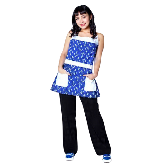 Nautical Anchor Apron for Women | Blue Sailor Apron Cooking and Baking Kitchen Gift