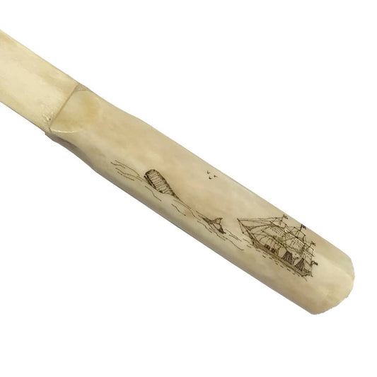 19th C. Whaling Schooner Scrimshaw OxBone Letter Opener Men's Gift | 9" Knife Mail Envelope Opener Staple Remover