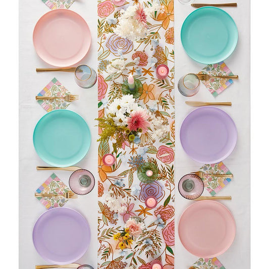 Dried Flowers Fabric Table Runner | Floral Design Cotton Table Mat | 13" x 70"