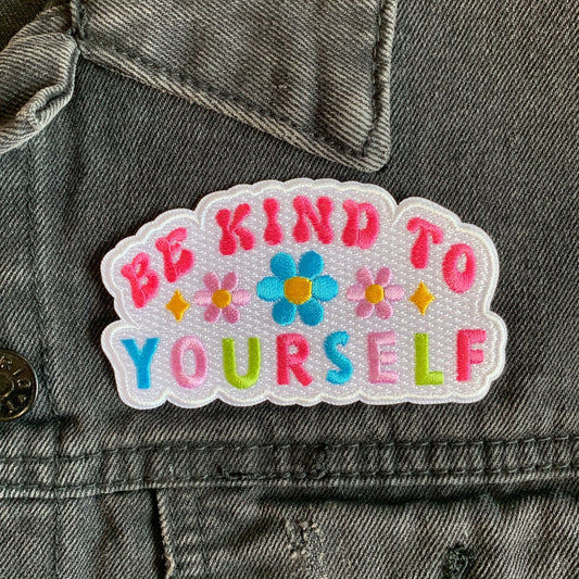 Be Kind to Yourself Positivity Quote Iron On Patches | Embroidered Applique