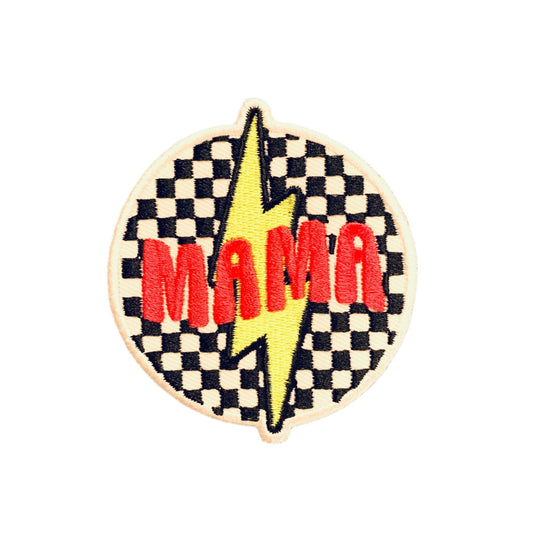 Checkered Mama Iron-On Embroidered Patch in Pink | Heat-seal Patches