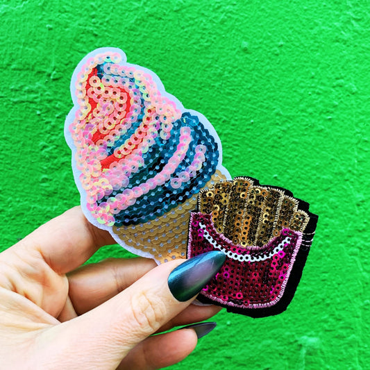 Sequined French Fries Patch | DIY Jacket & Backpack Decoration Sew or Iron On
