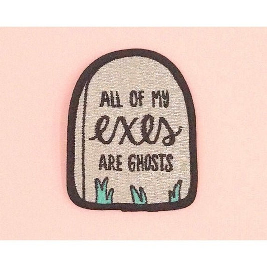 All of My Exes Are Ghosts Iron On Patch in Tombstone Shimmery Grey