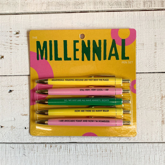 Fun Club Millennial Stereotypes Pen Set | Giftable Set of 5 Funny Pens